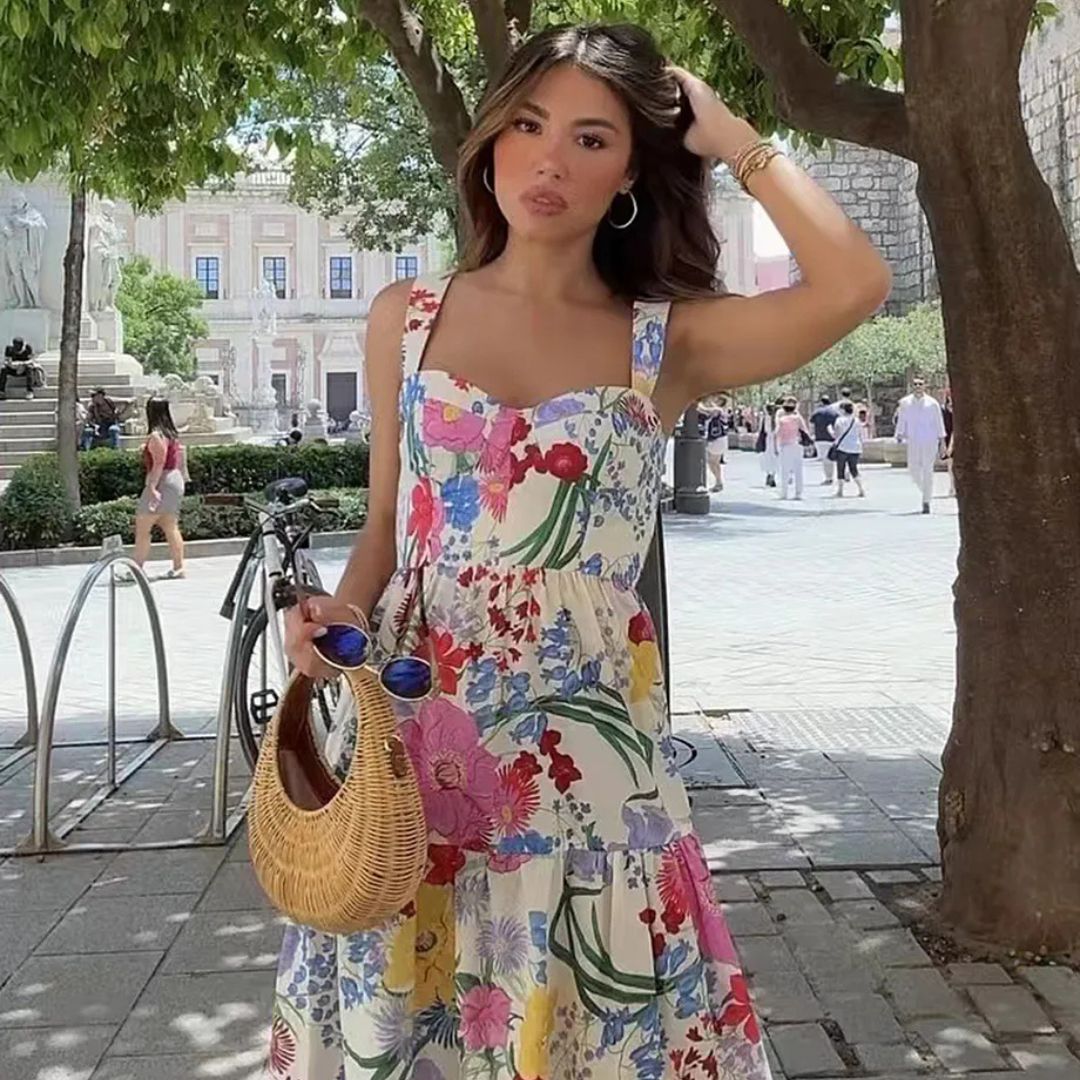 Fabric : Cotton Spagetti Strap Floral Short Dress Weight:220g Pattern:Graphic Style:Elegant Fit:Regular Neckline:Spaghetti Strap Sleeve...