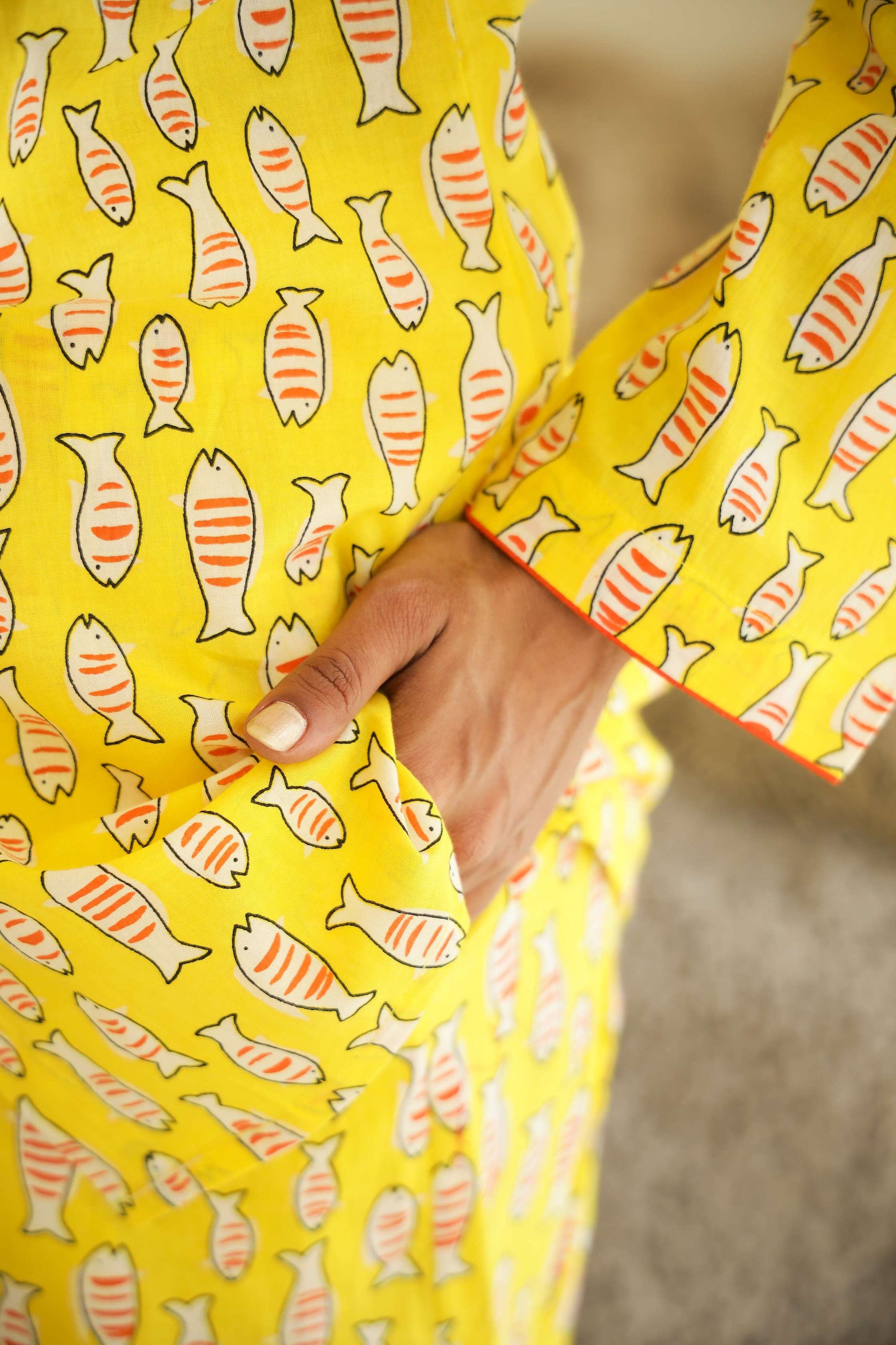 WORK: PRINTED FABRIC: COTTON TOP LENGTH: 32 SLEEVE LENGTH: 3/4 SLEEVE BOTTOM LENGTH: 38 Brighten...