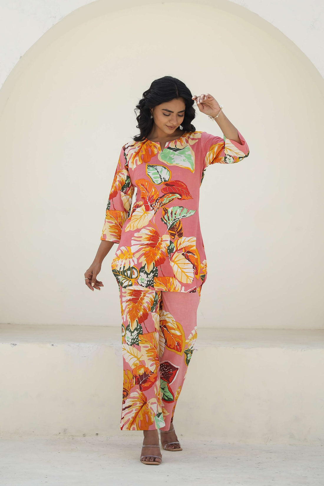 Tropical Paradise Leaf Print Cotton Co-Ord Set