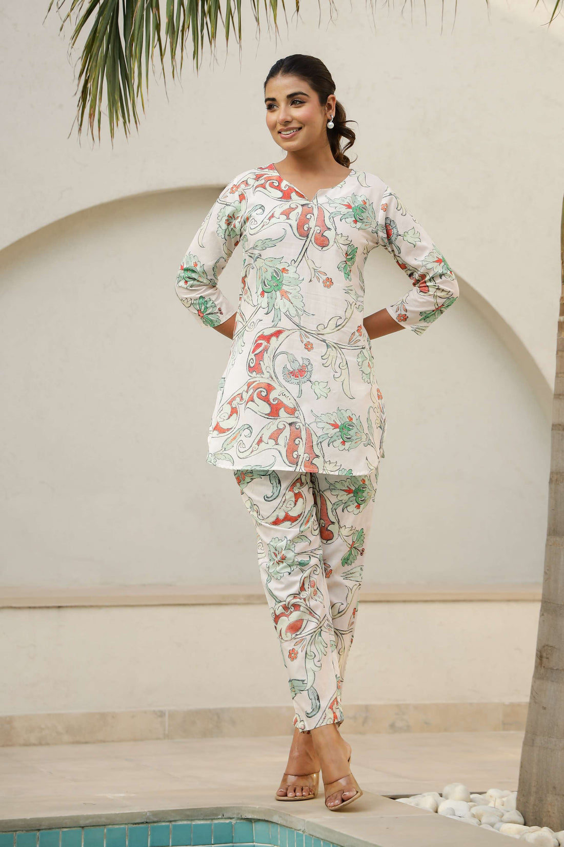 Off-White Floral Vine Print Co-Ord Set for Women – Elegant Everyday Style