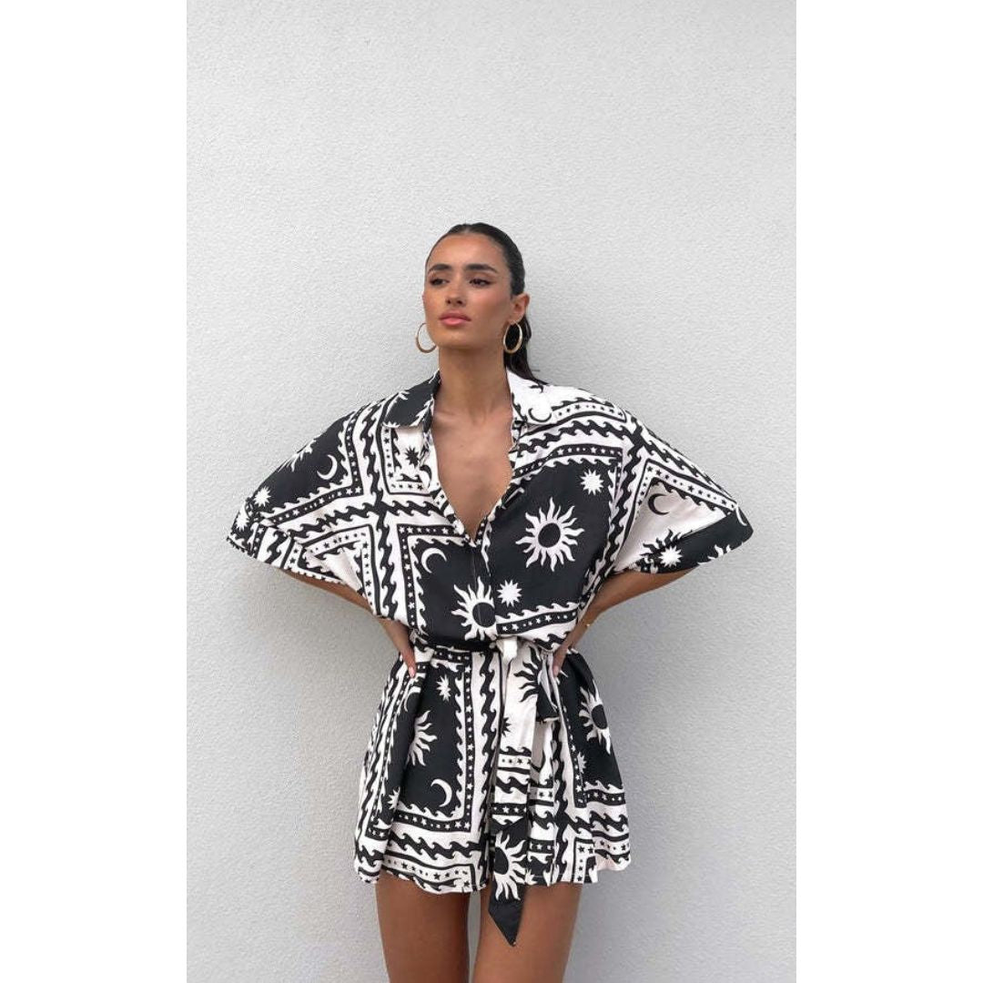 This casual playsuit is designed with a loose fit and made from high-quality polyester fabric,...