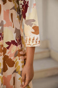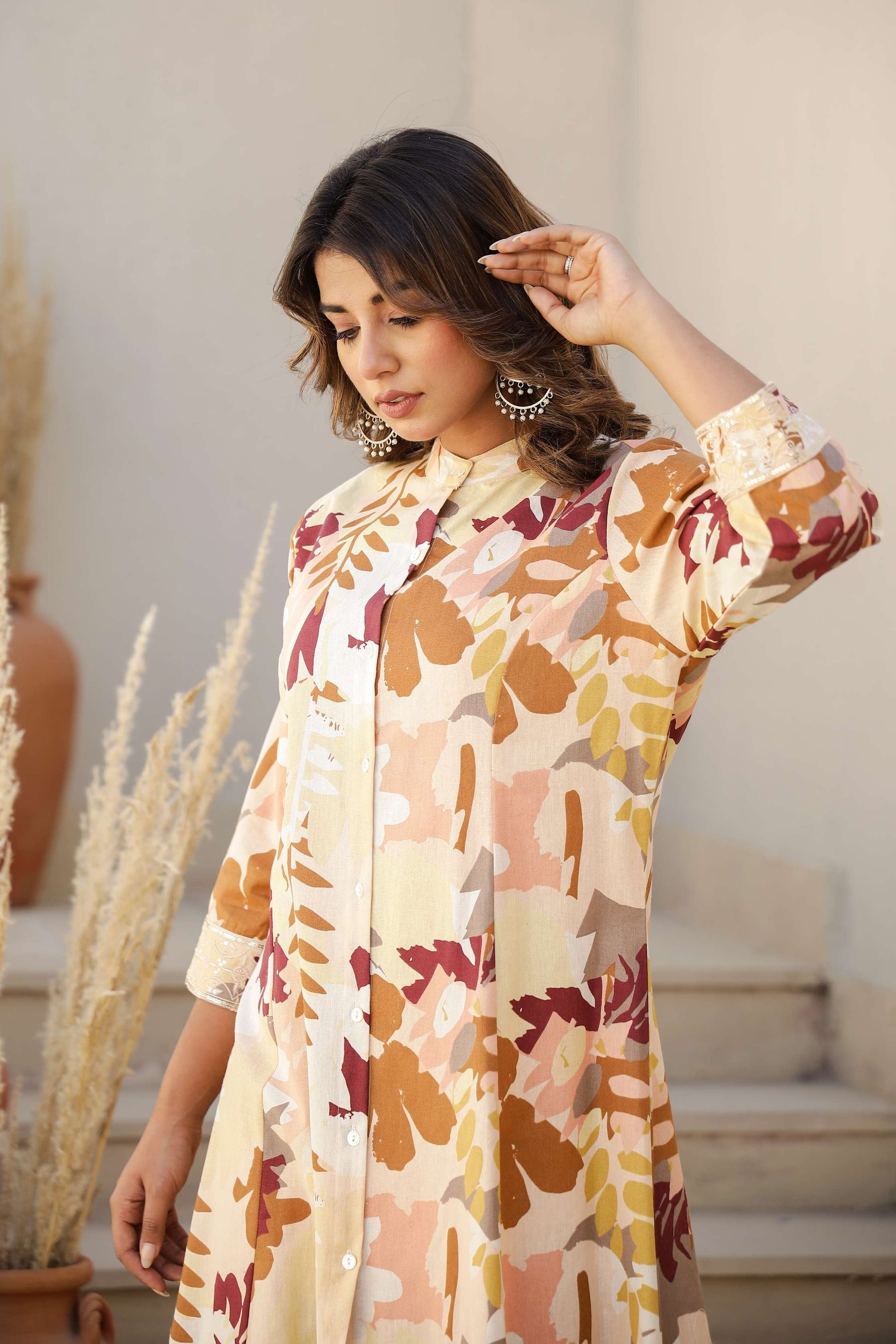Work: Handcrafted sleeve embroidery + Printed abstract floral design
