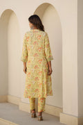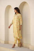 Yellow Floral Printed Cotton Kurta Set with Pants