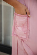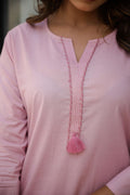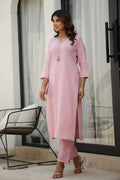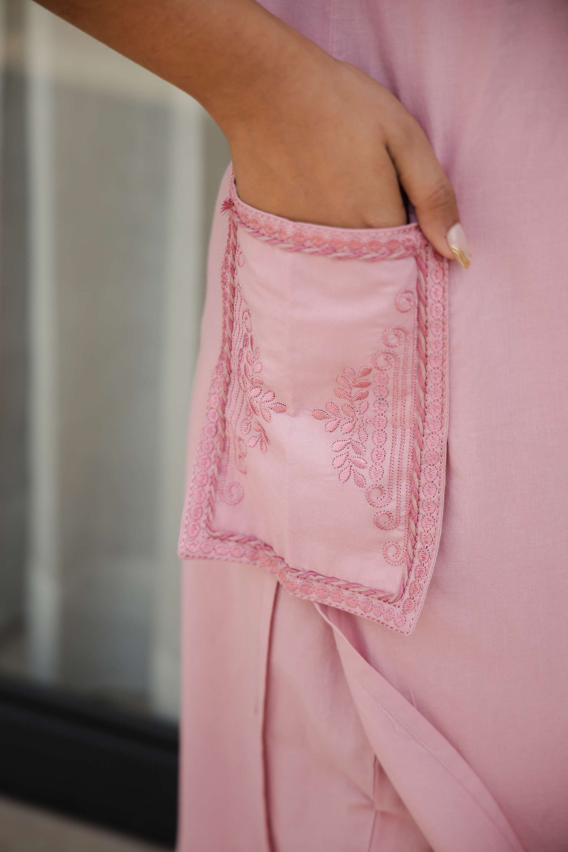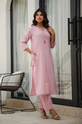 Pink Solid Cotton Kurta Set with Embroidered Pocket
