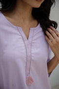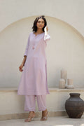 Purple Solid Cotton Kurta Set with Embroidered Pocket