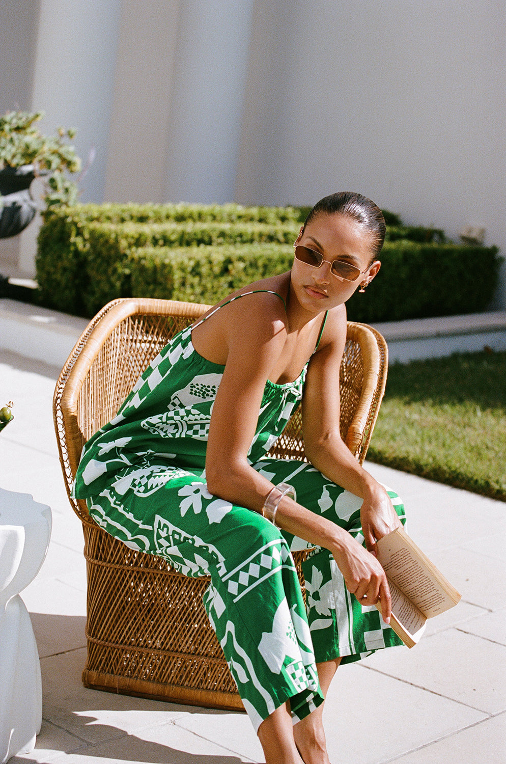 The ultra chic, resort style Alani Top is made from a high quality natural cotton voile fabric with our exclusive lemoni green print. It features thin rouleau straps with an adjustable draw tie at centre neckline and a relaxed fit.