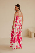Perfect for an event, the Bette Dress is made from a natural linen cotton blend fabric with our exclusive Adea Floral print. It features thin adjustable straps, straight neckline, boxy fit, longline bodice and a pleated a-line maxi skirt. Style with the Twirl Shell Necklace and Earrings
