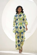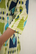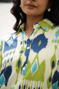 Elevate your casual style with the vibrant charm of the Blue & Green Ikat Print Co-Ord Set. Crafted from lightweight, breathable cotton, this eye-catching set features a unique fusion of traditional Ikat motifs in shades of blue, green, and ivory, perfect for a fresh, modern look.