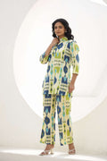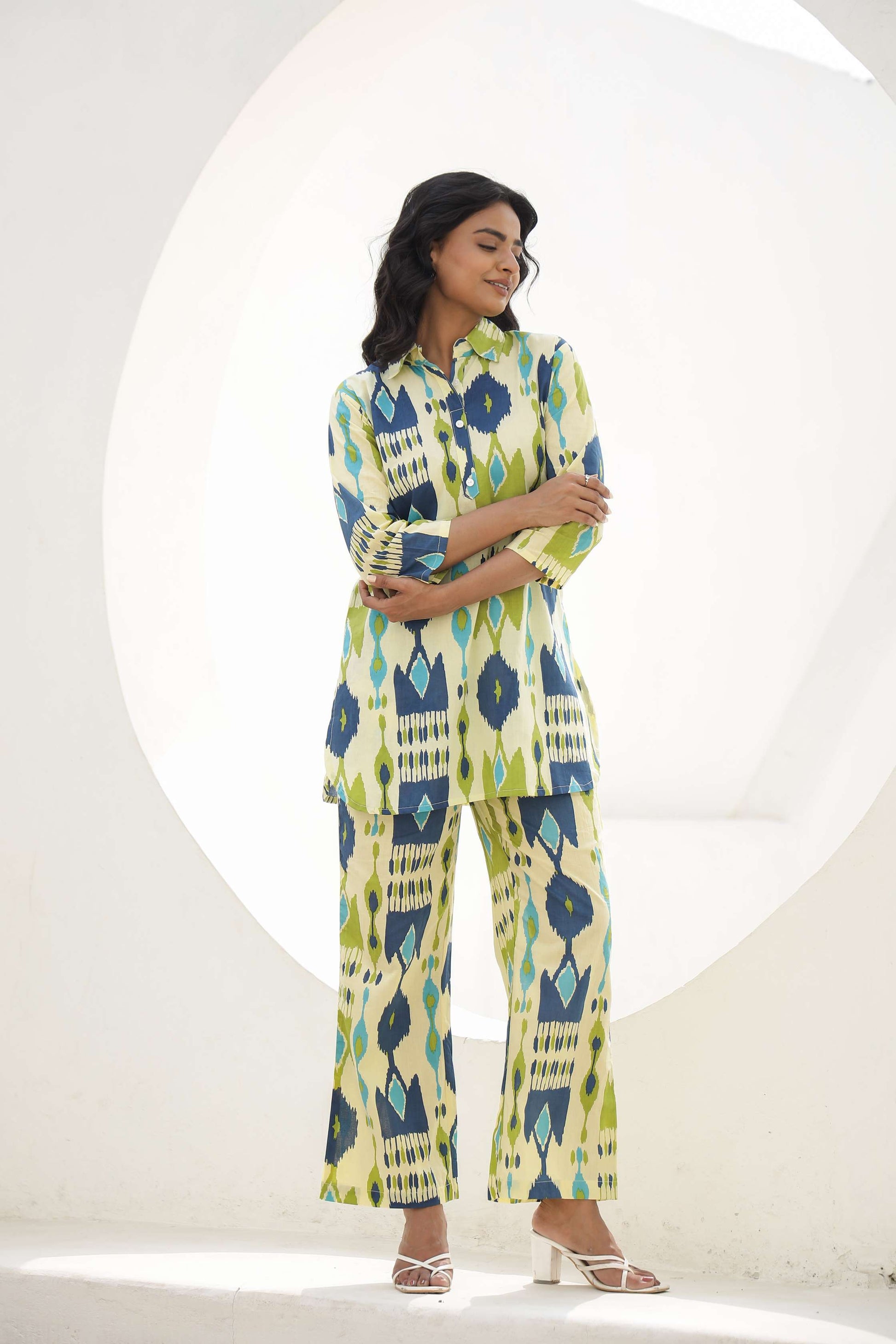 Blue & Green Ikat Print Cotton Co-Ord Set
