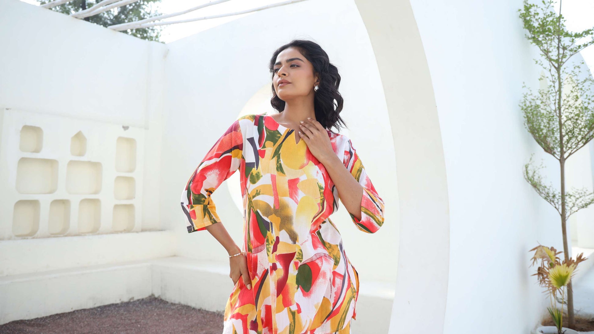 Step into a world of vibrant fashion with this Bold Abstract Cotton Cord Set, perfect for those who love to make a statement. Designed in breathable, soft cotton, this two-piece set features a relaxed-fit top and matching straight-leg pants, ideal for casual outings, brunch dates, or holidays. The art-inspired abstract print in red, yellow, and green hues brings an eye-catching flair to your wardrobe.