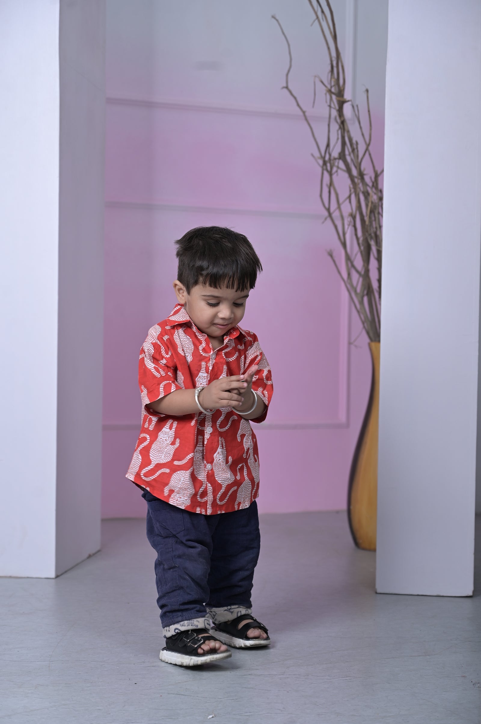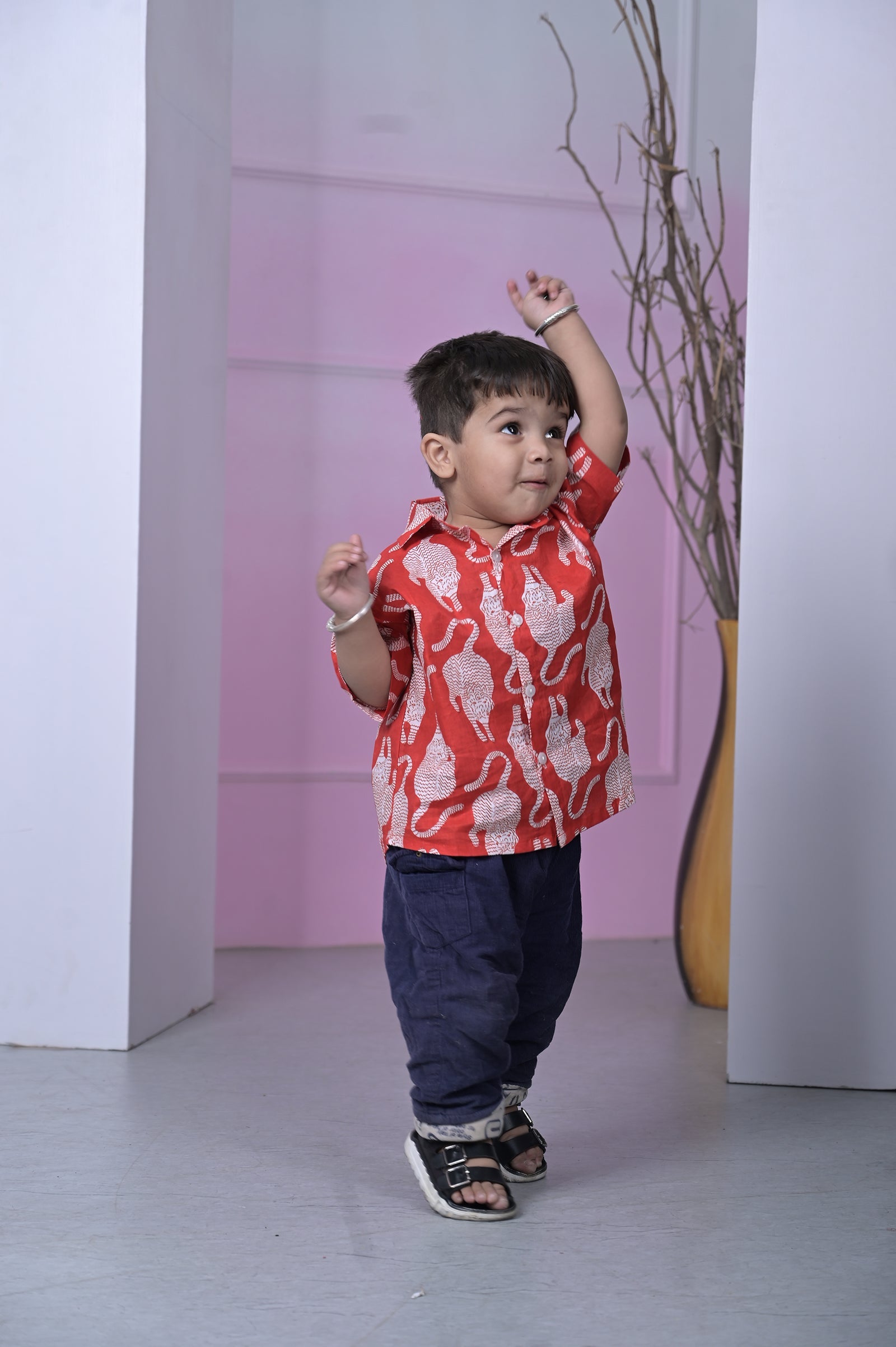 Crimson Cheetah Printed Boy’s Shirt – Red