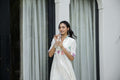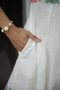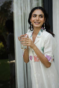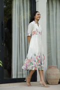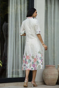 Elegant Lotus Floral Print Shirt Dress for Women – White Midi
