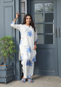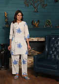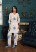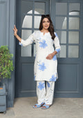 Elegant White & Blue Floral Kurta Set – Cotton Comfort