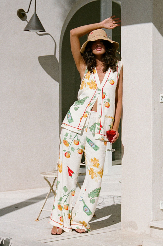 The effortlessly stylish Izabelle Cord set is made from a luxurious viscose rayon fabric with our exclusive Aesta print. It is a relaxed style featuring a plunging neckline with large covered buttons, contrast red bind details and a longline hem. Complete the look with the Izabelle Pants!