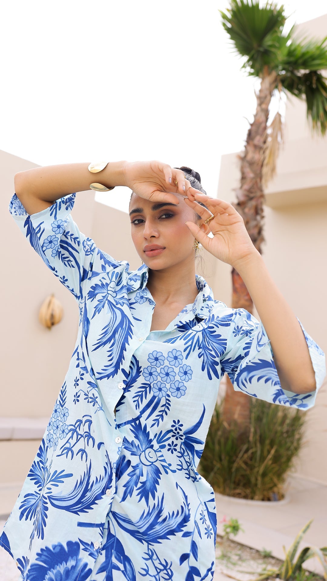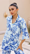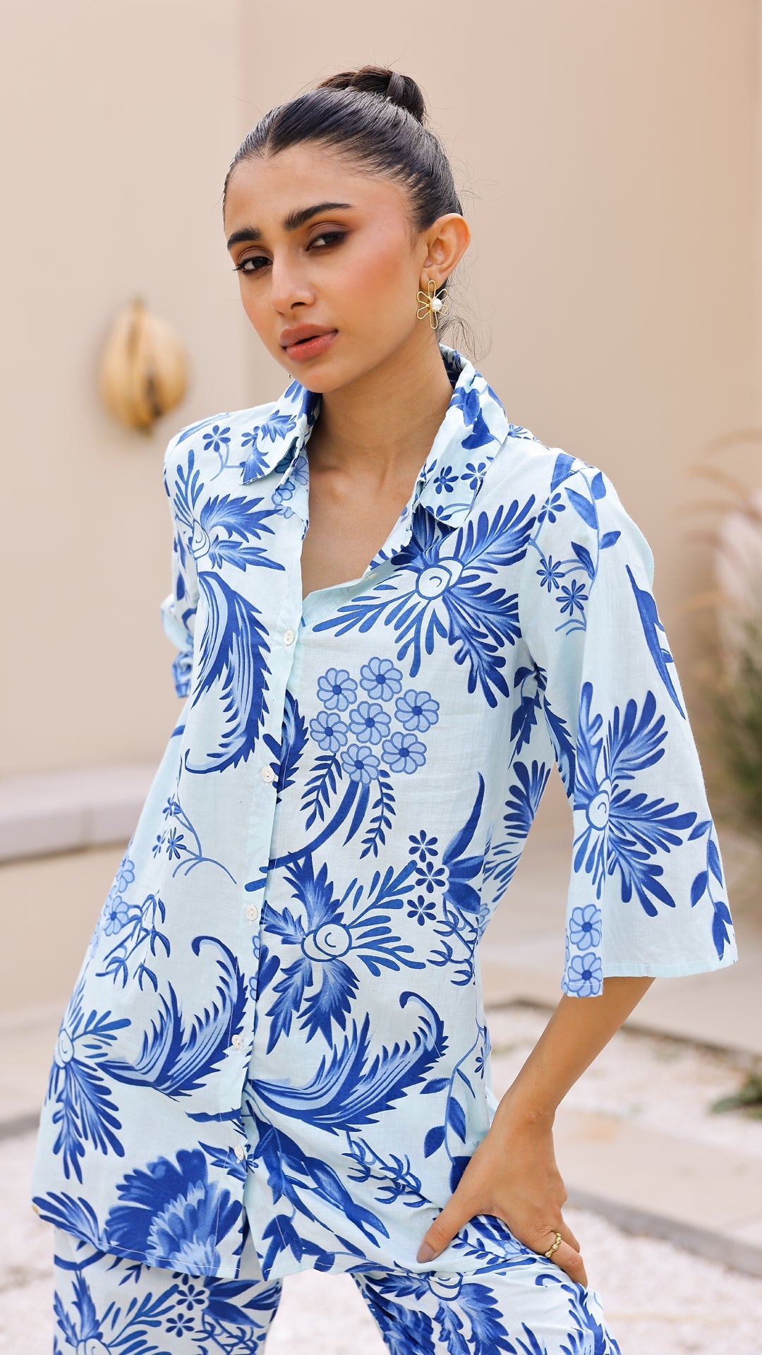 Elevate your everyday with our Sky Blue Hand-Drawn Floral Co-Ord Set. Crafted from breathable cotton, this two-piece outfit features artistic floral motifs in a calming blue palette. A chic pick for travel, lounge, or laid-back styling.