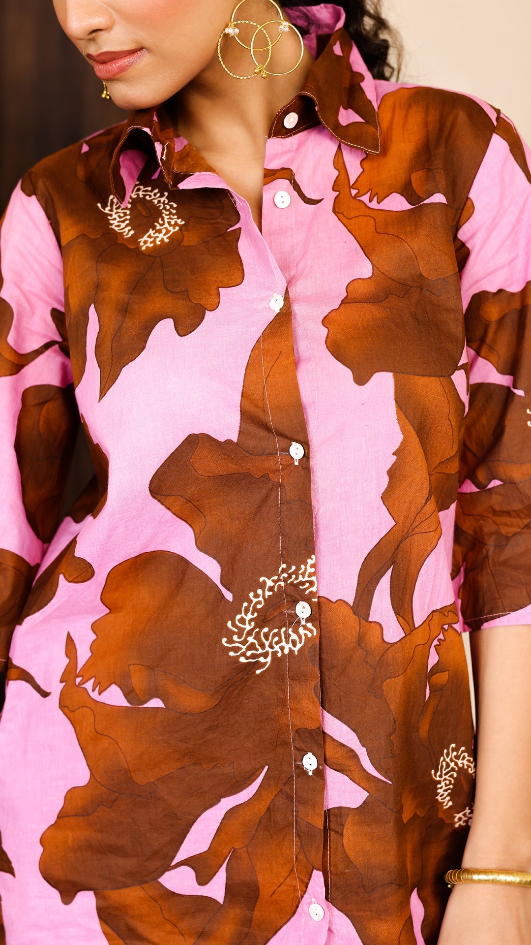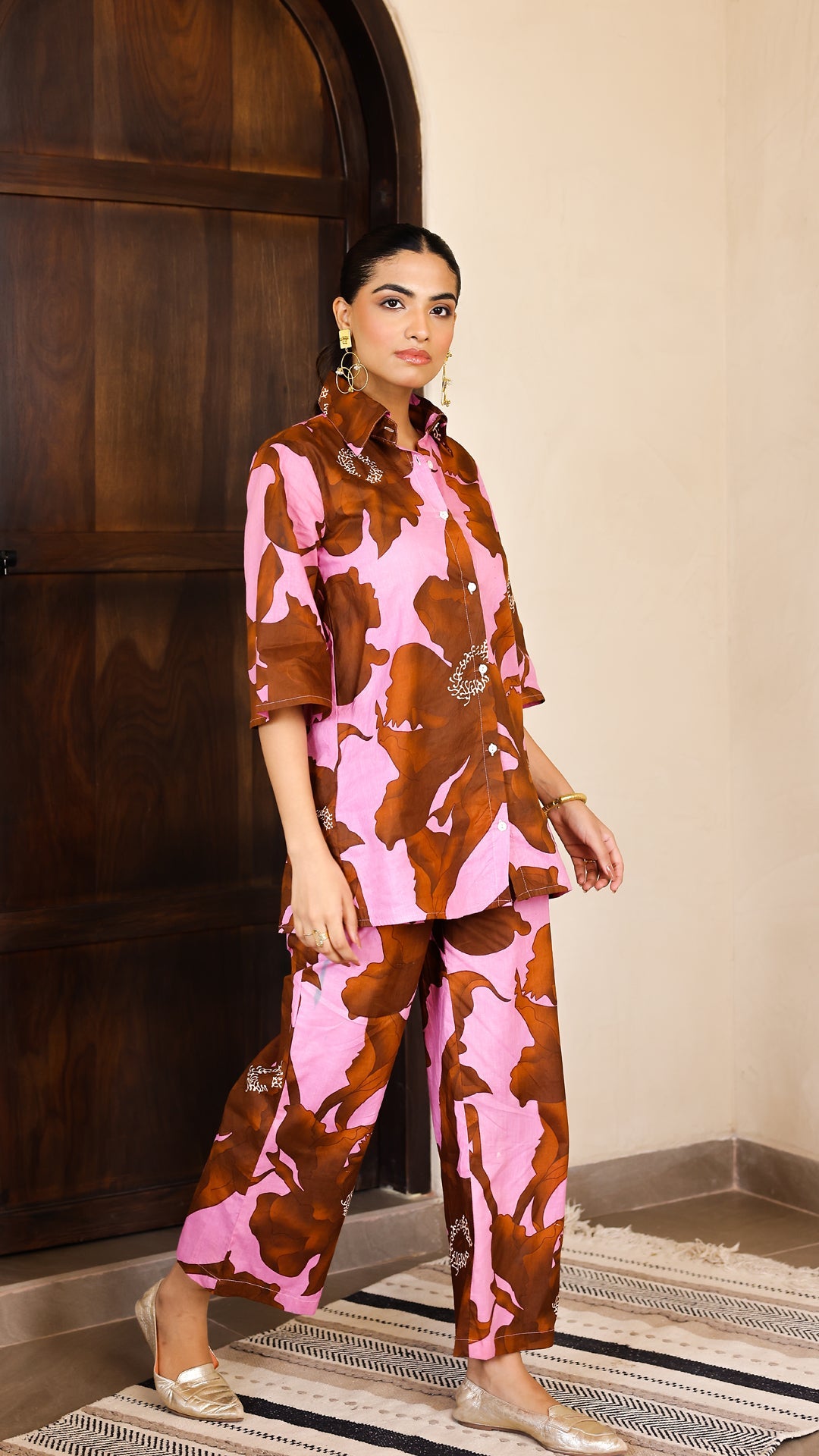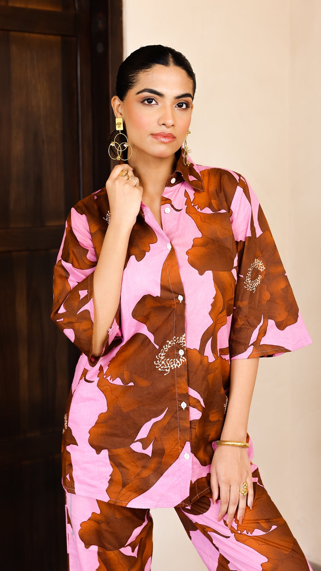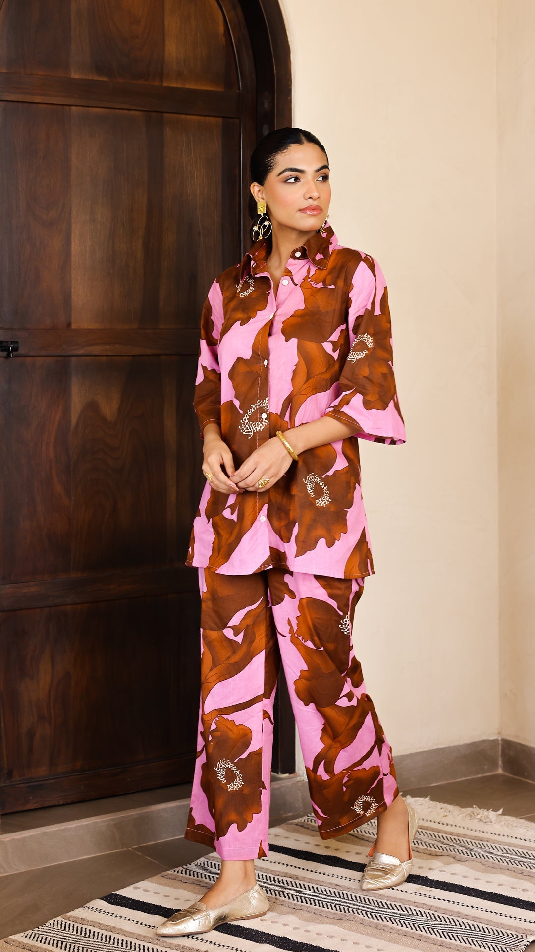 Chocolate Floral Co-Ord Set – Pink Cotton Blend