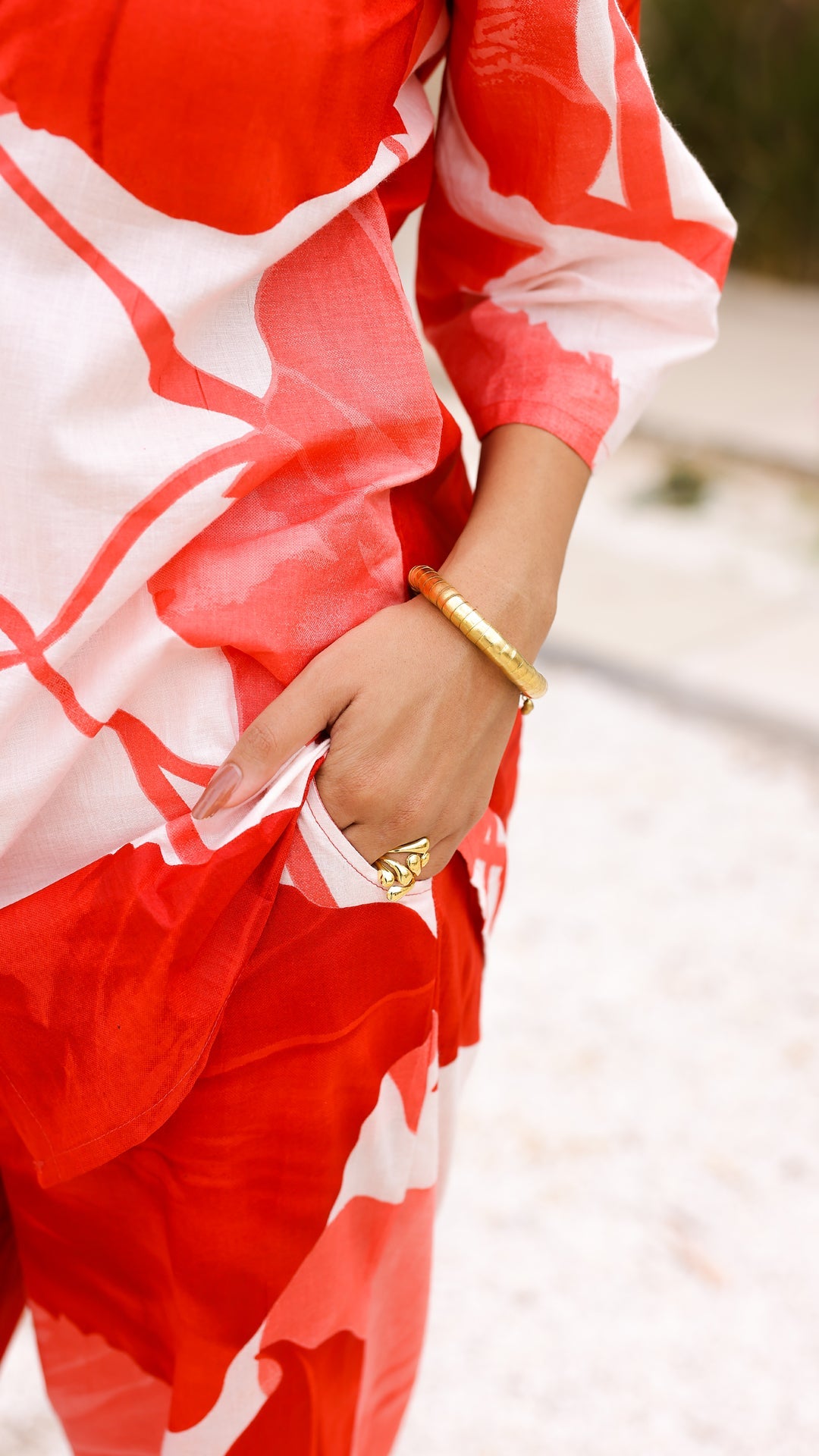 Bold Red Petal Co-Ord Set – Cotton Statement Wear