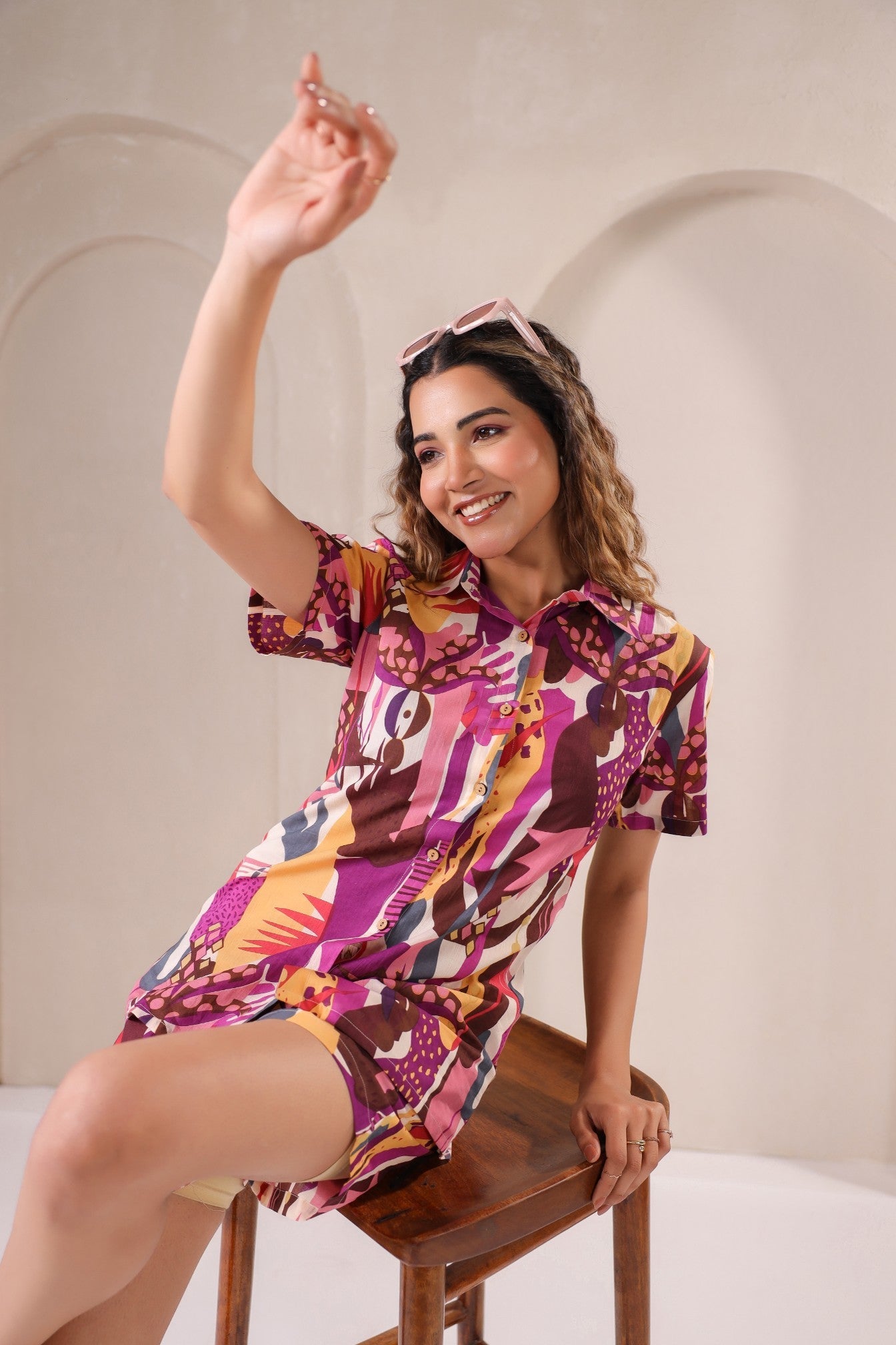 Step into a world of color and confidence with the Sunset Mirage Co-Ord Set. Featuring a statement abstract print in rich sunset tones, this breezy two-piece ensemble is designed for the modern muse. The relaxed button-down shirt pairs seamlessly with airy shorts, creating the perfect balance of comfort and bold elegance. Whether you’re jet-setting on vacation or embracing a casual-chic day out, this co-ord set makes dressing up effortless and stylish.