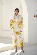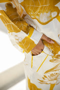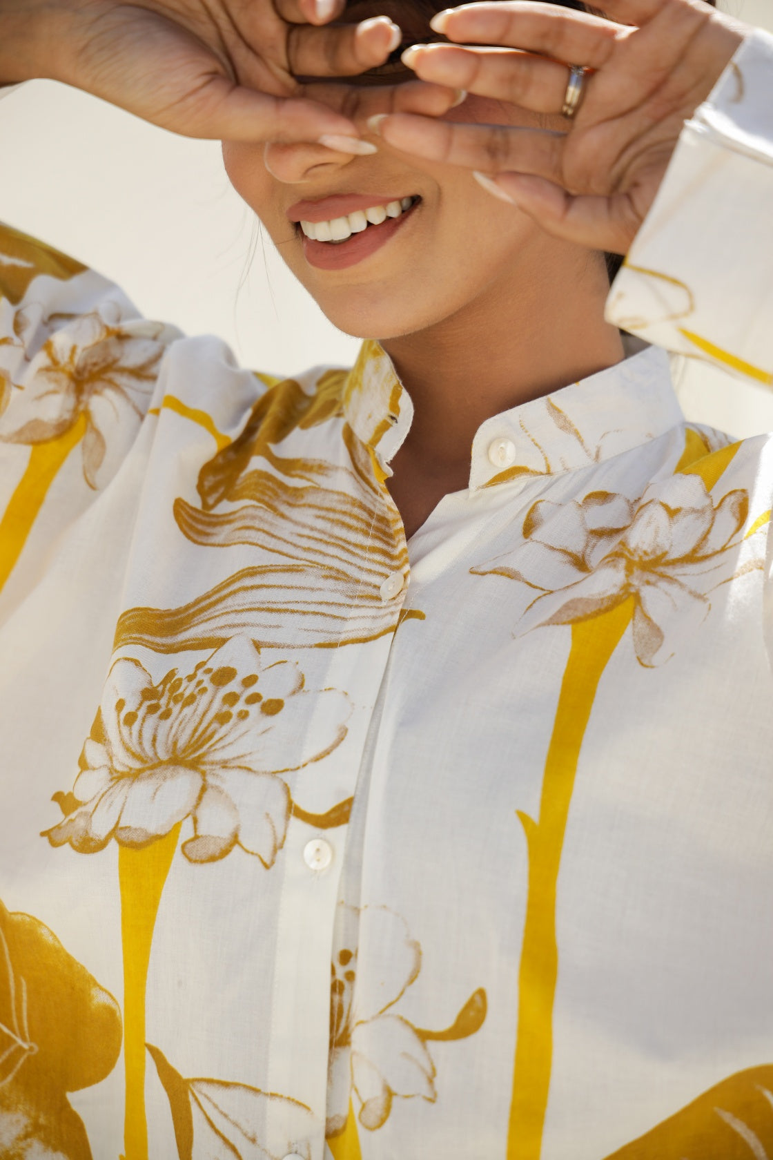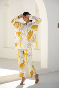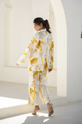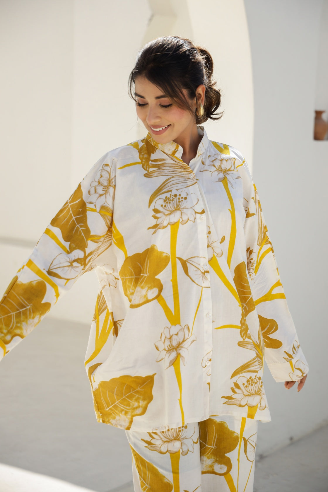 Elegant Mustard & White Floral Co-Ord Set – Oversized Shirt & Pants