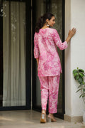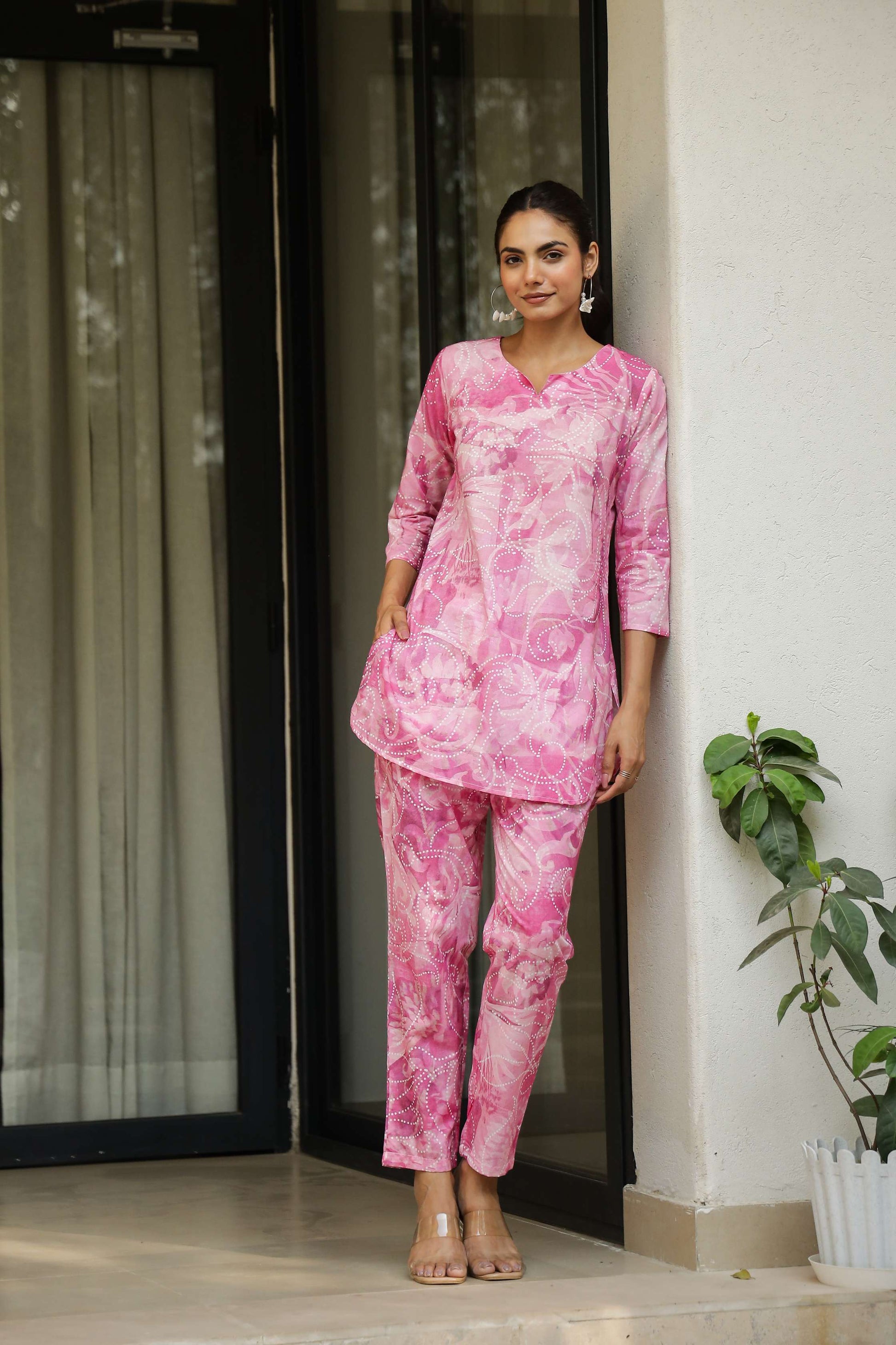Pink Swirl Print Cotton Co-Ord Set for Women