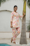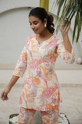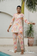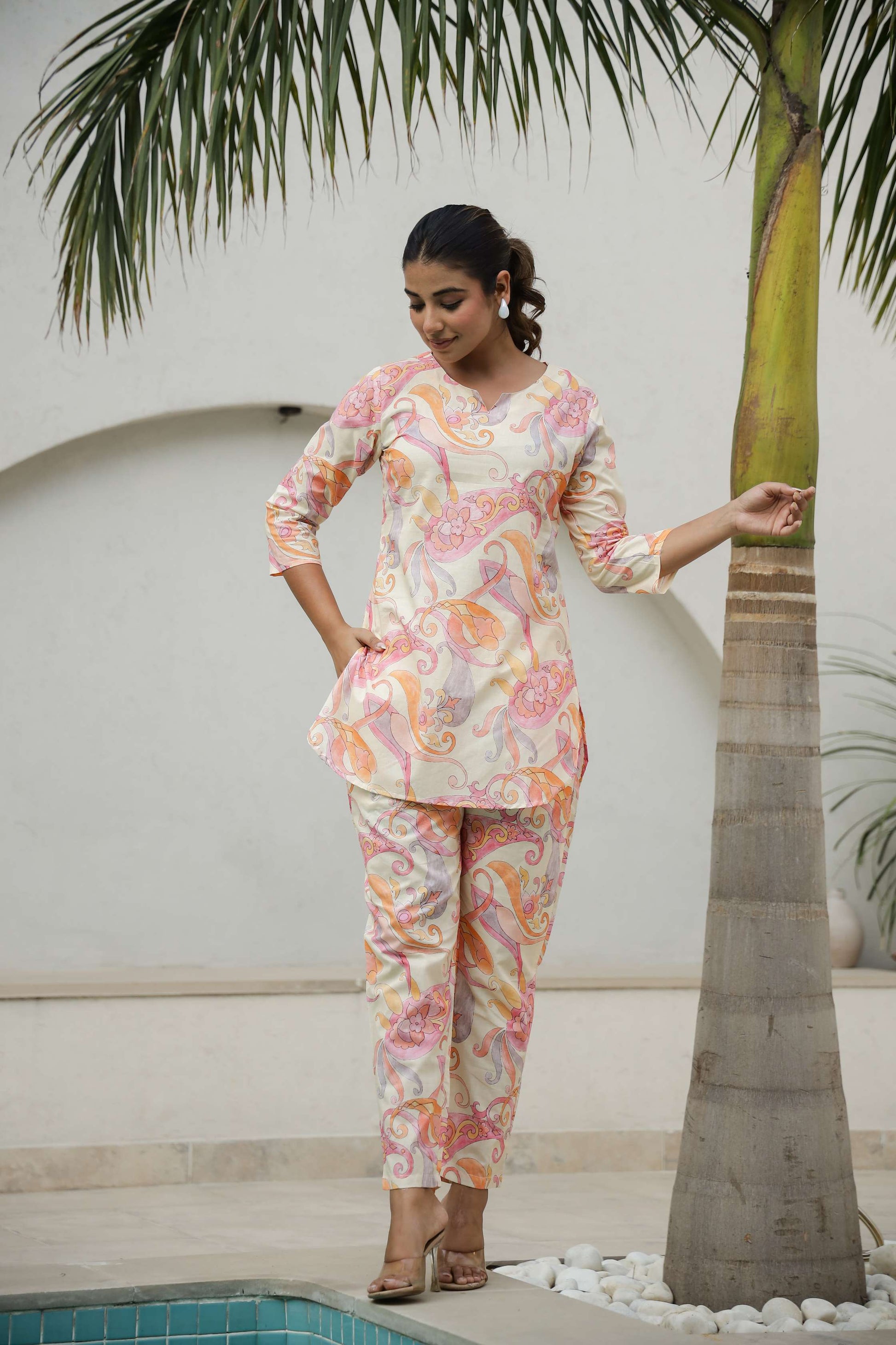 Cream & Coral Printed Co-Ord Set for Women – Elegant Summer Style
