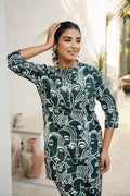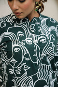 Make a bold fashion statement with this Green Abstract Face Print Co-Ord Set from Label Flavia. Featuring an artistic, all-over face sketch print in striking white on a rich green base, this coordinated two-piece set is your ticket to head-turning style with zero effort.
