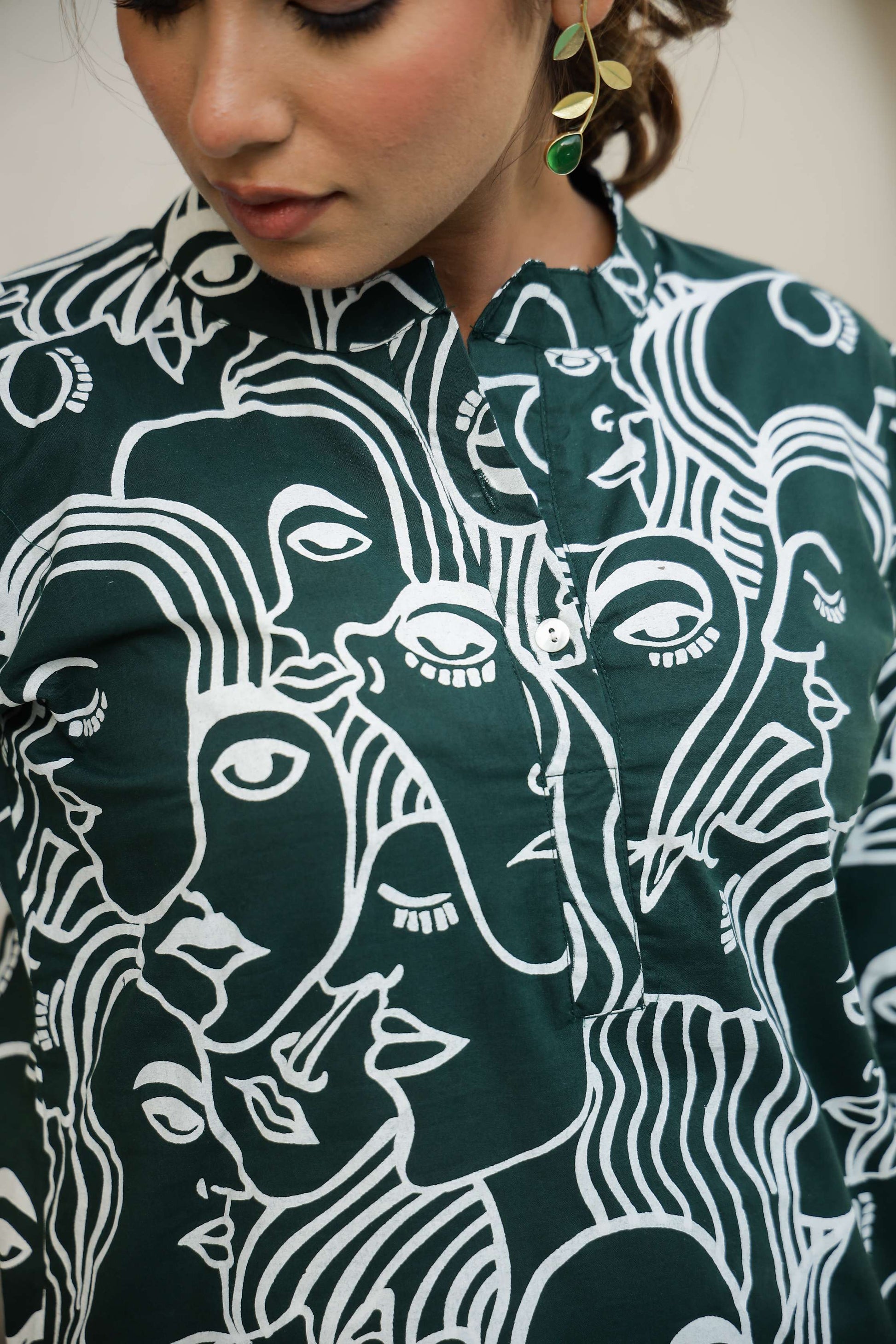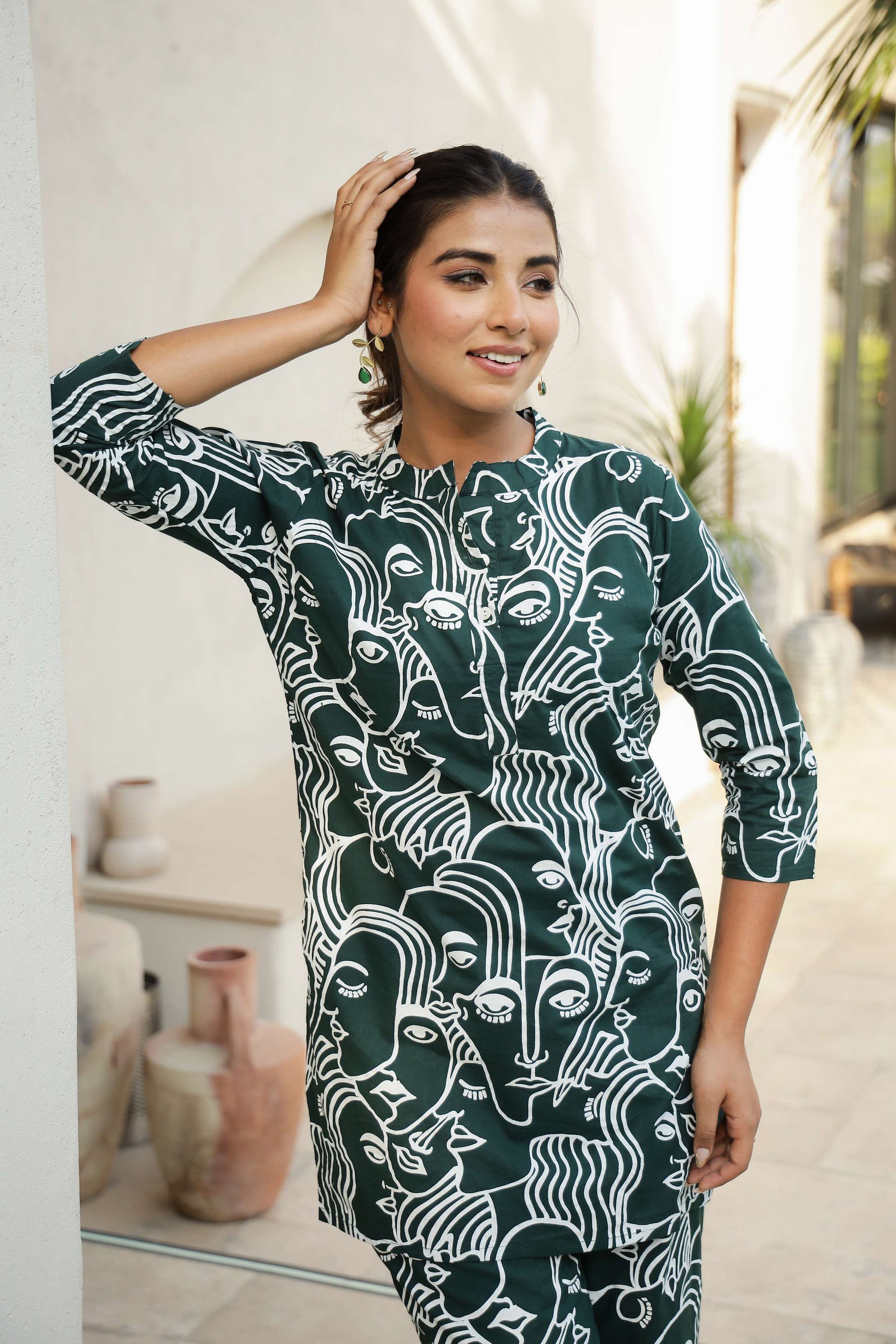 Green Abstract Face Print Co-Ord Set for Women – Bold & Trendy Look