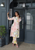 Elevate your everyday style with this pastel floral kurta set. Crafted in breathable cotton, the straight-fit kurta features a soft floral print, mandarin collar, and 3/4th sleeves. Paired with matching printed pants, it's a chic and comfortable choice for day outings or casual events.