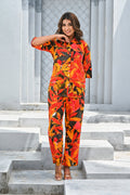 Women’s Tropical Orange & Red Leaf Print Co-ord Set