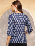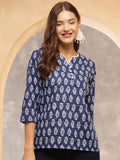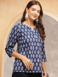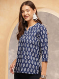 Indigo Charm Cotton Tunic Top – Navy Blue with White Handblock Print