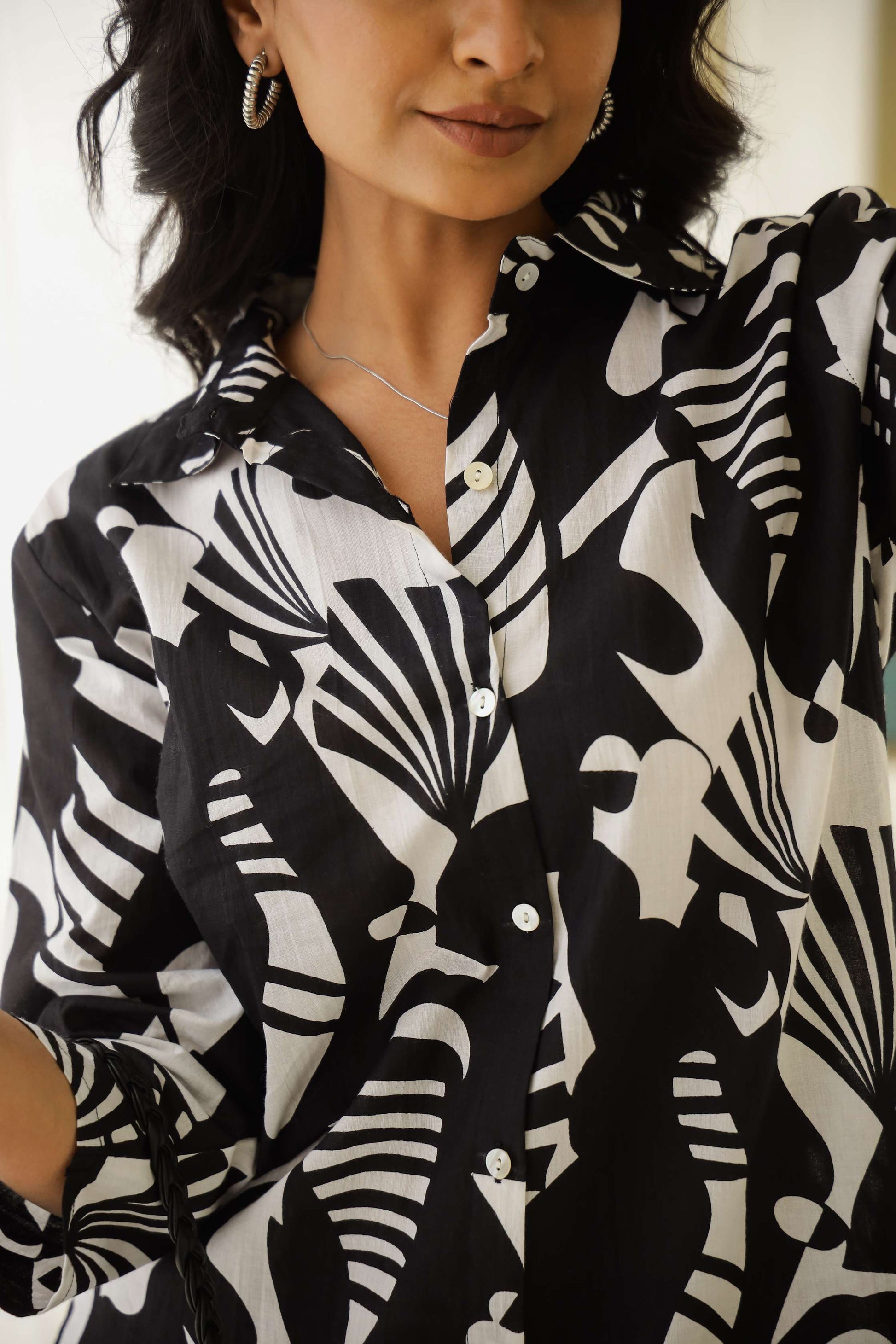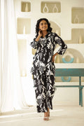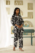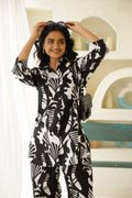 Make a bold statement with the timeless elegance of black and white in the Monochrome Botanical Printed Cotton Co-ord Set. This modern co-ord blends abstract botanical shapes with a striking color contrast, making it perfect for both casual outings and elevated everyday looks.