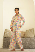 Made from breathable cotton, the relaxed fit ensures all-day comfort, whether you’re lounging at home, running errands, or enjoying a cozy weekend getaway. The bright, bold print brings out the fun, making this set a conversation starter wherever you go!