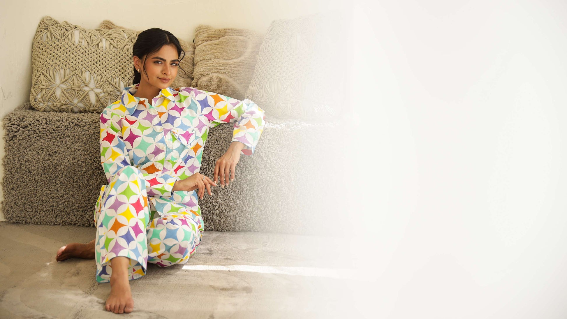 Crafted in soft, breathable cotton, the set offers effortless comfort while making sure you stand out, whether you’re lounging at home, heading to a resort, or simply brightening up your day with color.