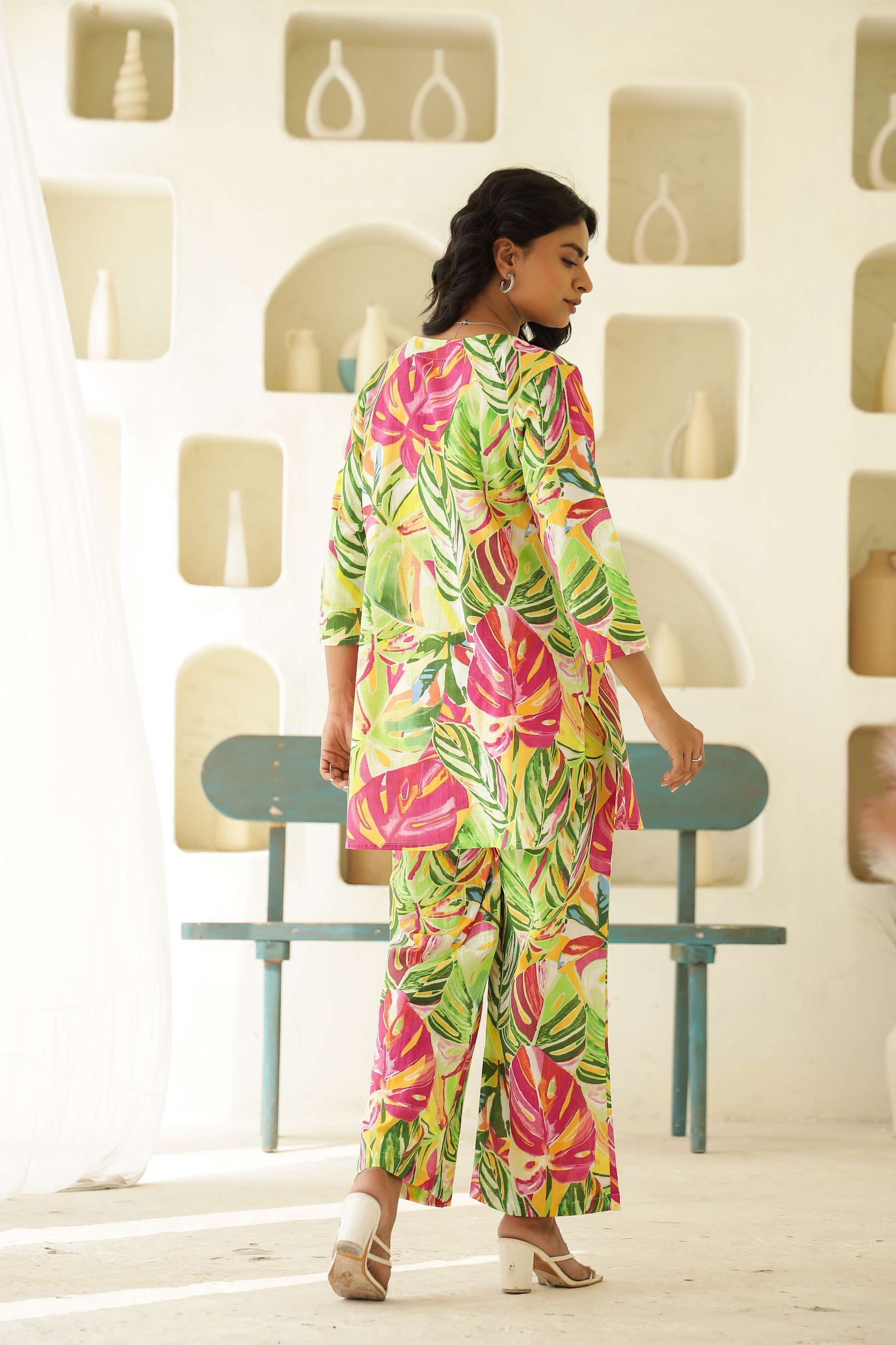 Tropical Paradise Leaf Print Cotton Co-Ord Set