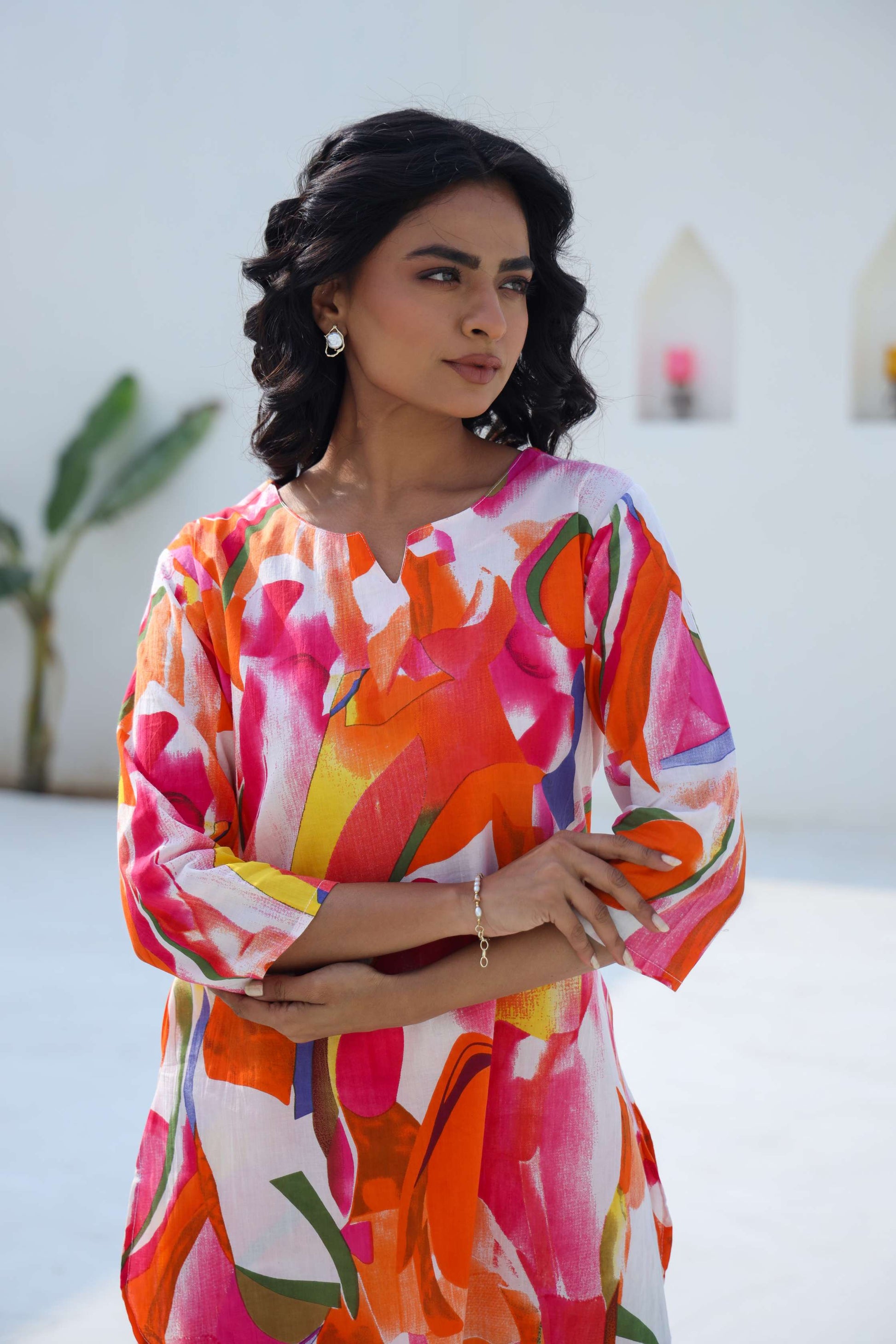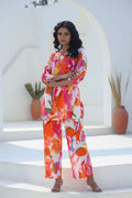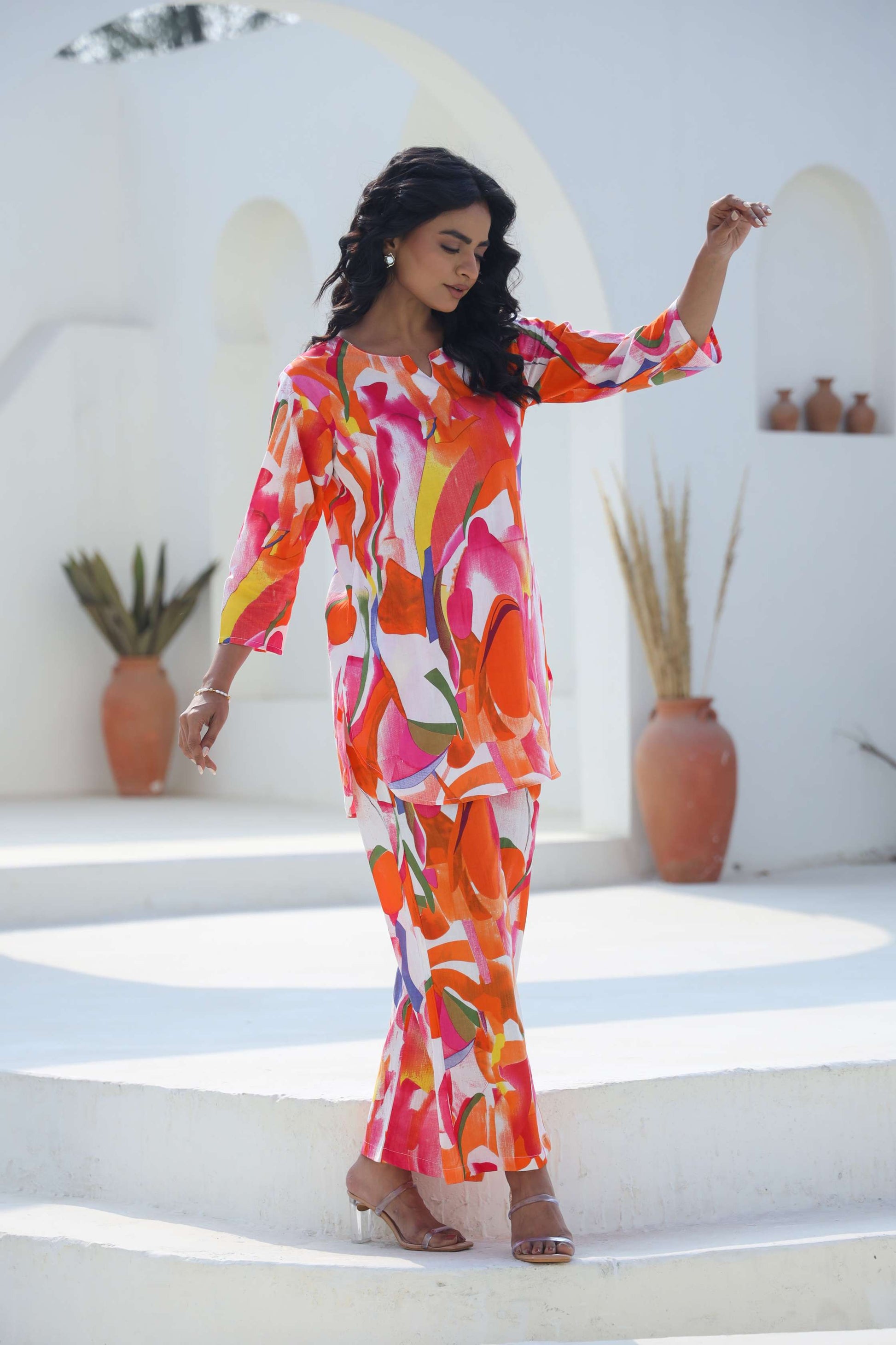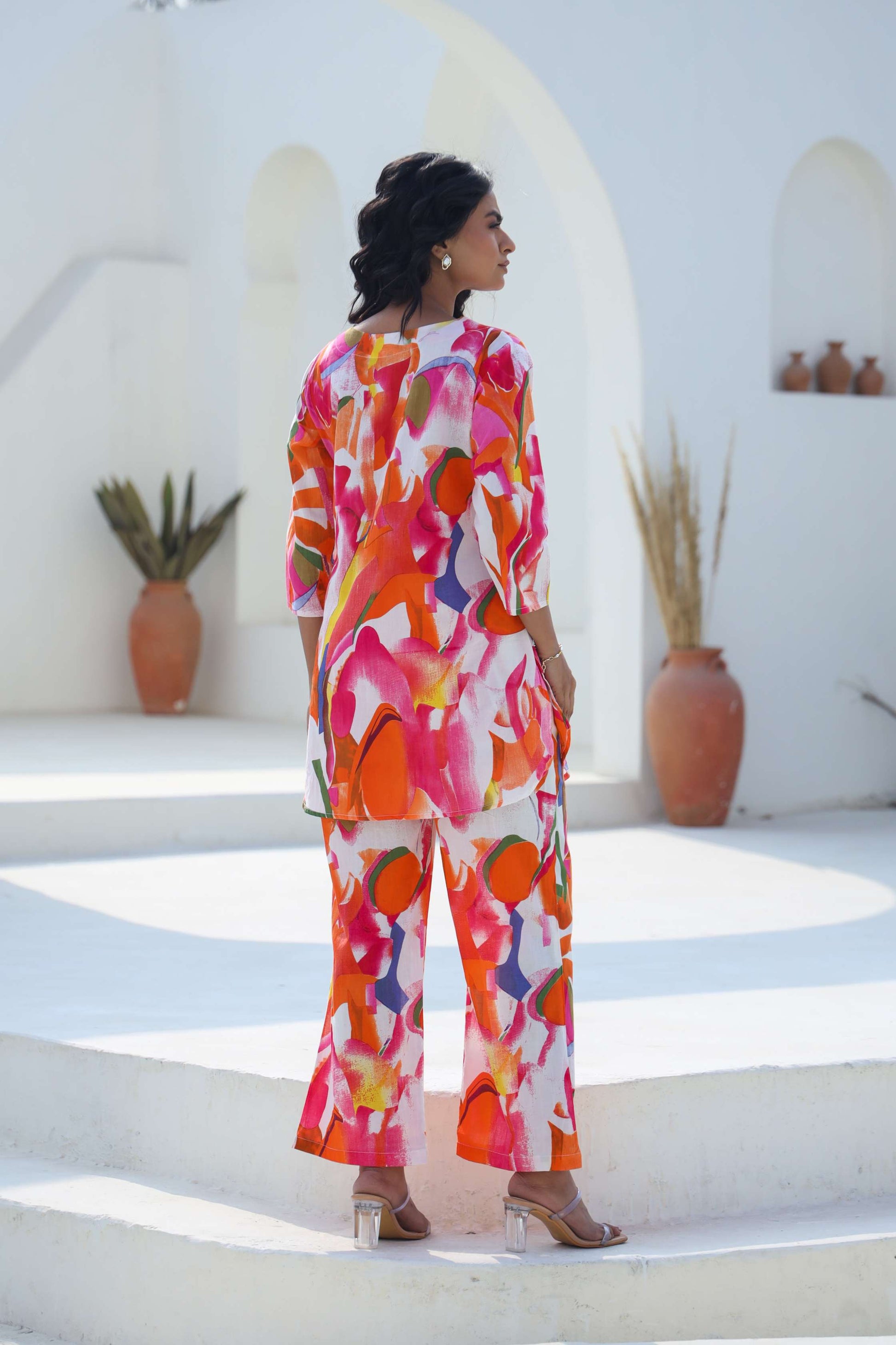 Add a pop of color to your wardrobe with this Vibrant Abstract Printed Cord Set, crafted from soft, breathable Cotton for all-day comfort. Featuring a relaxed-fit top paired with matching straight-fit pants, this easy-breezy set is perfect for casual outings, vacations, or even work-from-home chic. Its bold abstract print ensures you stand out wherever you go!