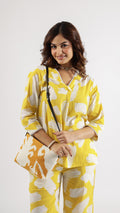Add a touch of adventure to your wardrobe with this Yellow Ikat Crossbody Bag. The vibrant botanical print featuring exotic plants and wildlife makes it a perfect accessory for a nature-loving fashionista. Ideal for both casual outings and short trips, this compact and functional bag keeps your essentials organized. It comes with a sturdy zipper closure, a front zip pocket for easy access to small items, and an adjustable strap for comfortable wear.